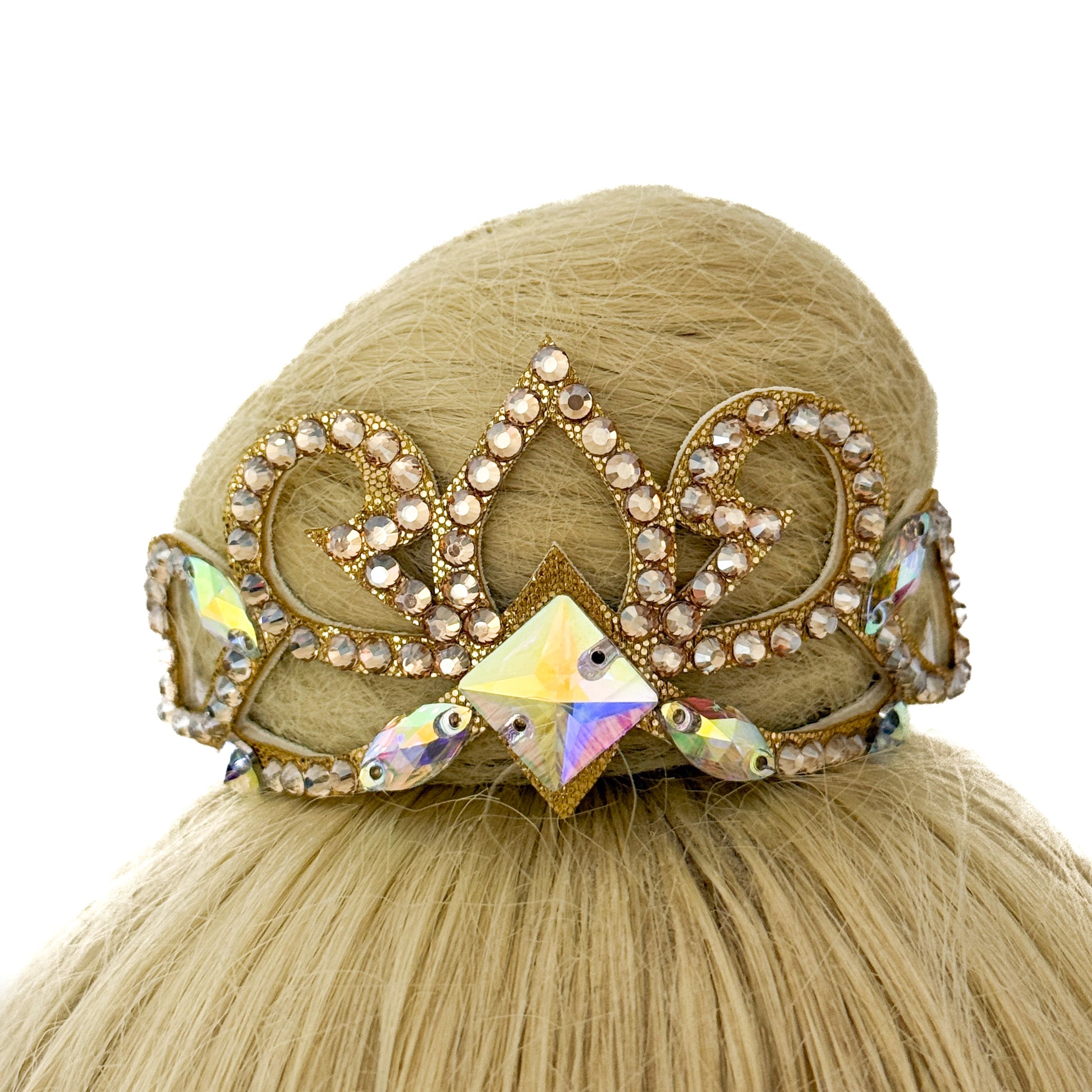 A bun crown is a sparkling accessory that completes the outfit and makes every gymnast feel like a princess.